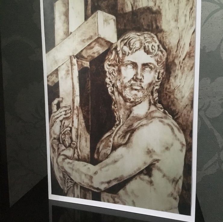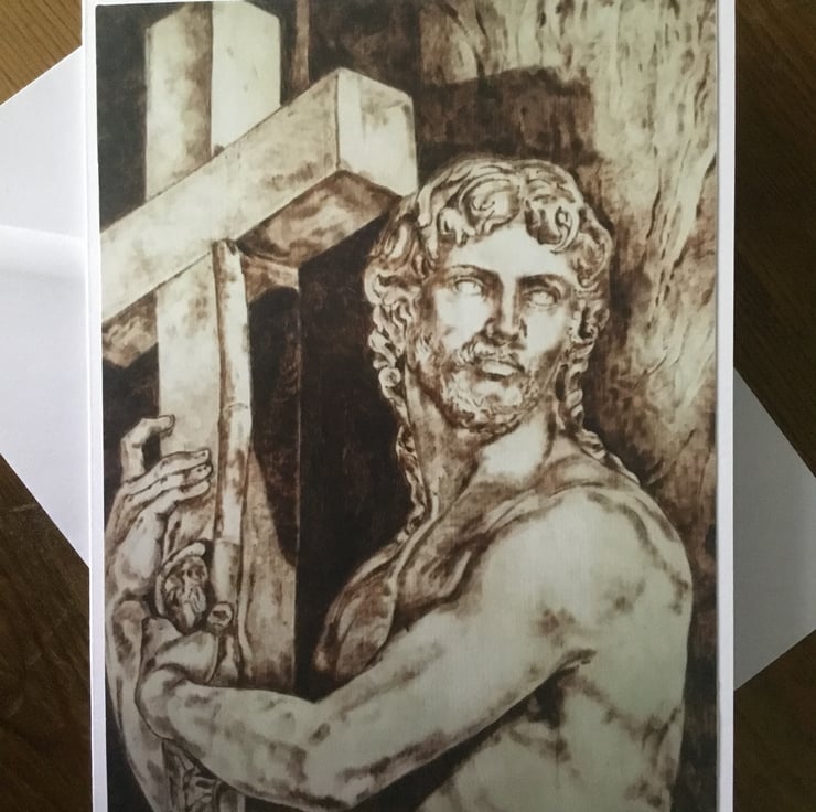 Michelangelo’s’Christ Risen’ pyrography art card. Perfect for Easter or First Communion.