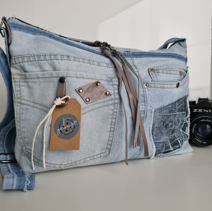 I got my hands on some nice light-coloured jeans, so I created a cool denim bag.