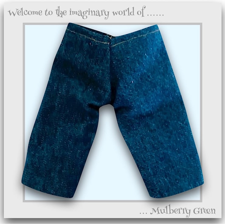 A pair of cute denim jeans, made to fit the Mulberry Green characters. They are fashioned just like grown up ones and are made from good quality cotton denim.