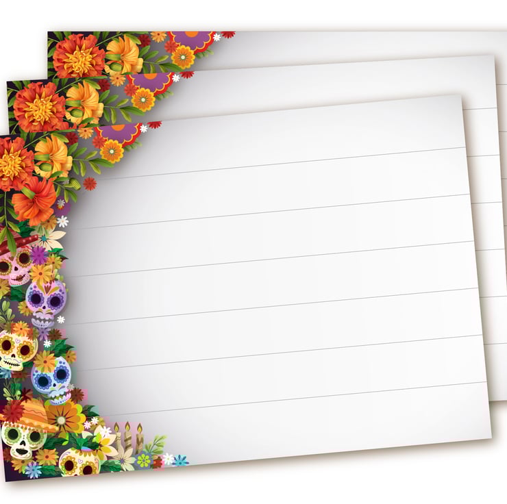 These are A7 in size (10.5cm wide x 7.5cm tall) and have feint lines. Simply peel off the backing paper (see example photo) and stick to an envelope. Also useful as 'to do' lists, etc. Envelope, pen and notebook not included.