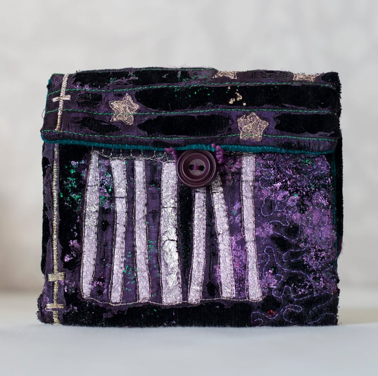 Made with free motion embroidery and some decorative stitches, this richly coloured little purse is a one off piece that could be a special little gift or just bought for yourself! The colours, textures and design definitely have a goth feel to them.