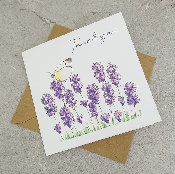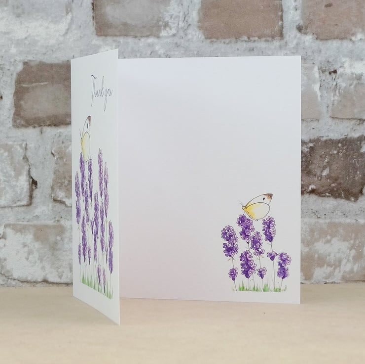 This Lavender Butterfly Thank you card has been printed using my own original artwork on to new white textured 280gsm card which has been FSC approved.