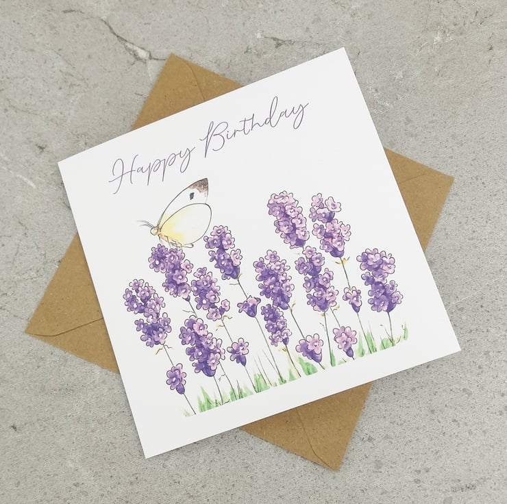 This Lavender Butterfly Birthday card has been printed with my original artwork on 'New' white texture FSC approved 280gsm card and comes with a brown kraft envelope protected in a clear biodegradable bag.