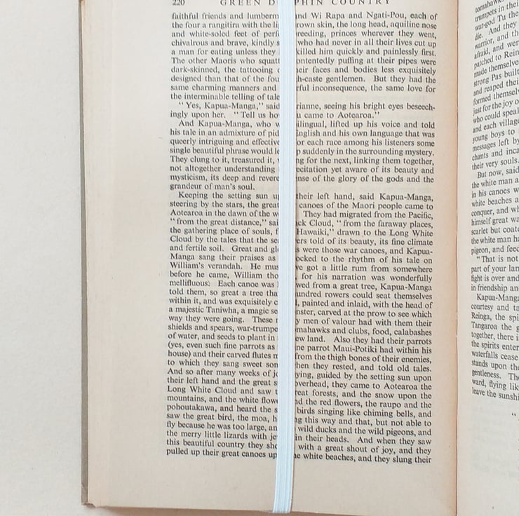 The bookmark measures approximately 12cm high and 8cm wide, and the elastic is approximately 28cm long (unstretched). It fits standard paperback to larger hardback size.