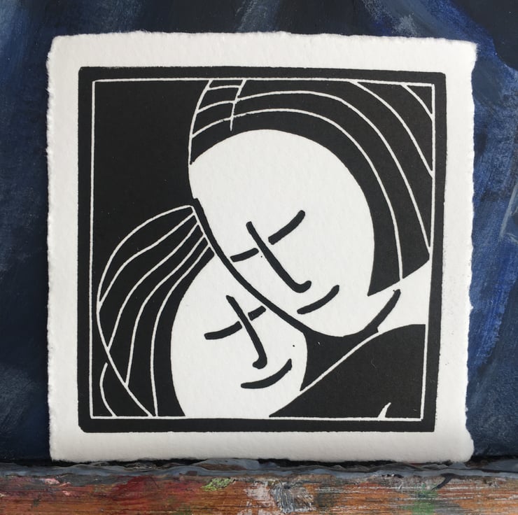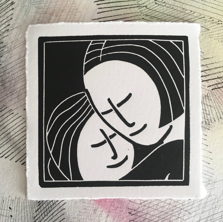 "Hug" is a tiny linocut print created by me as part of The Open Press Project 2022/23 Open Print Exchange. These prints are printed on the tiny 3D printed etching press - just google Open Press Project to see more about the presses. I have sent my 10 editioned prints to Germany now, one will be exhibited around the world and featured in a coffee table book later in the year. The other 9 will be sent out to other artists participating and I will receive a selection of 9 prints by other artists.