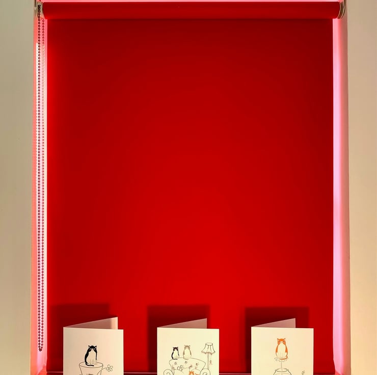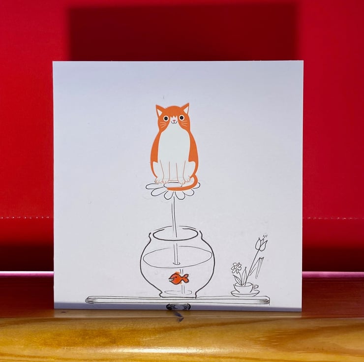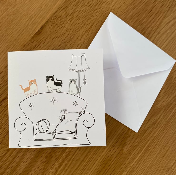 CATs cards feature the antics of three adventurous felines: Charli, Andi and Tinks. 125mm square, high white cards with matching envelopes and left blank for your own message.