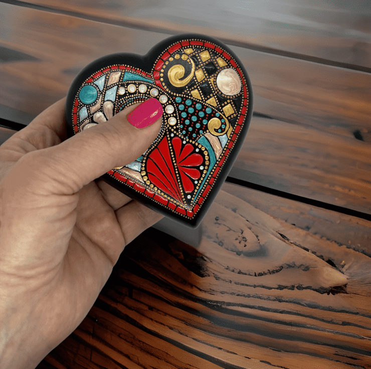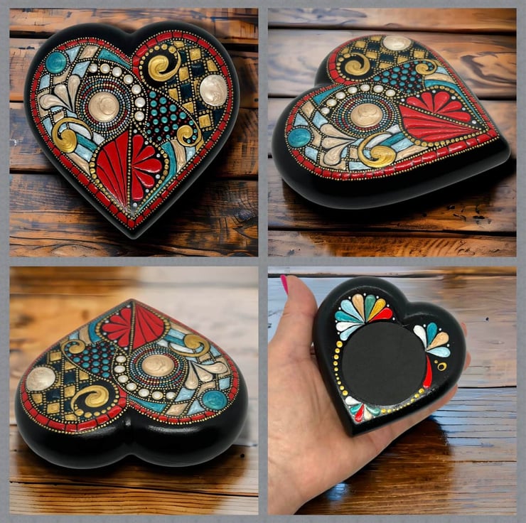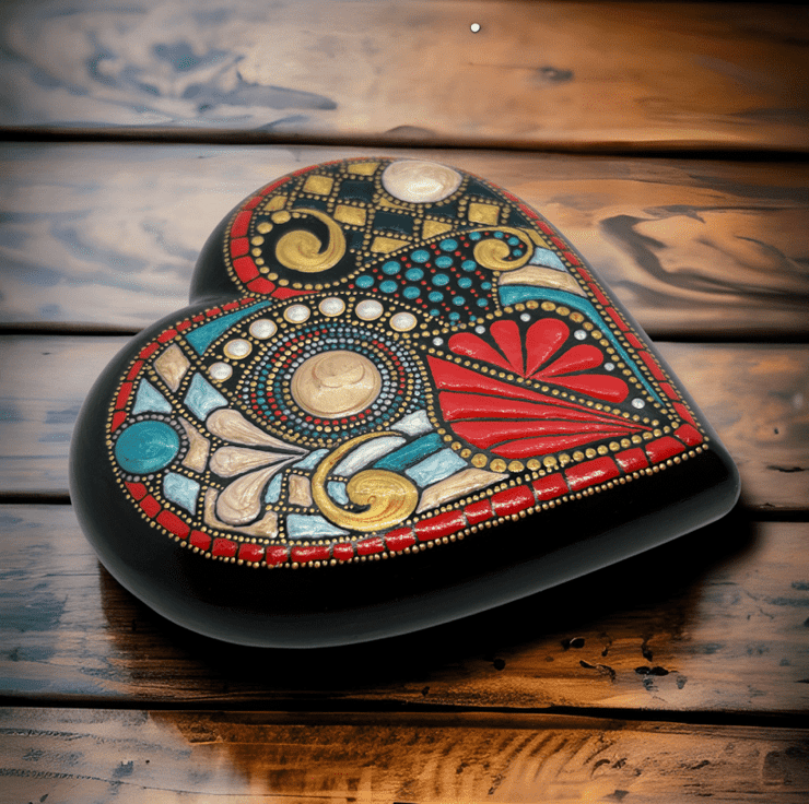 A fun & freestyle heart paperweight, hand-crafted from alpha plaster and hand painted in an original and unique abstract style.