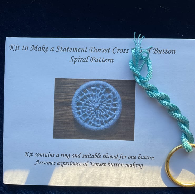 The kit contains full instructions, including a chart of the design, together with suitable thread and a 32 mm ring to create a single statement button.