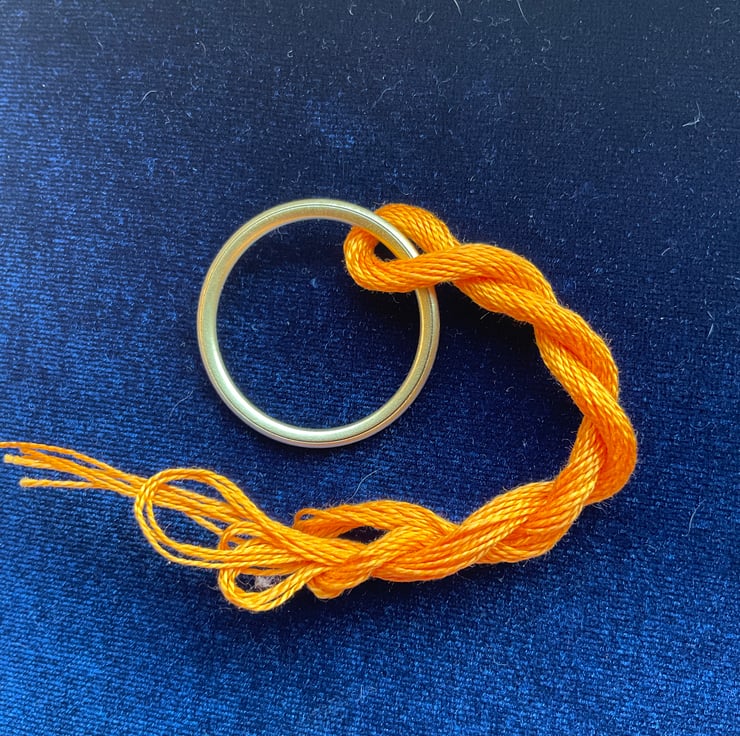 The kit contains full instructions, including a chart of the design, together with suitable thread and a 32 mm ring to create a single statement button.
