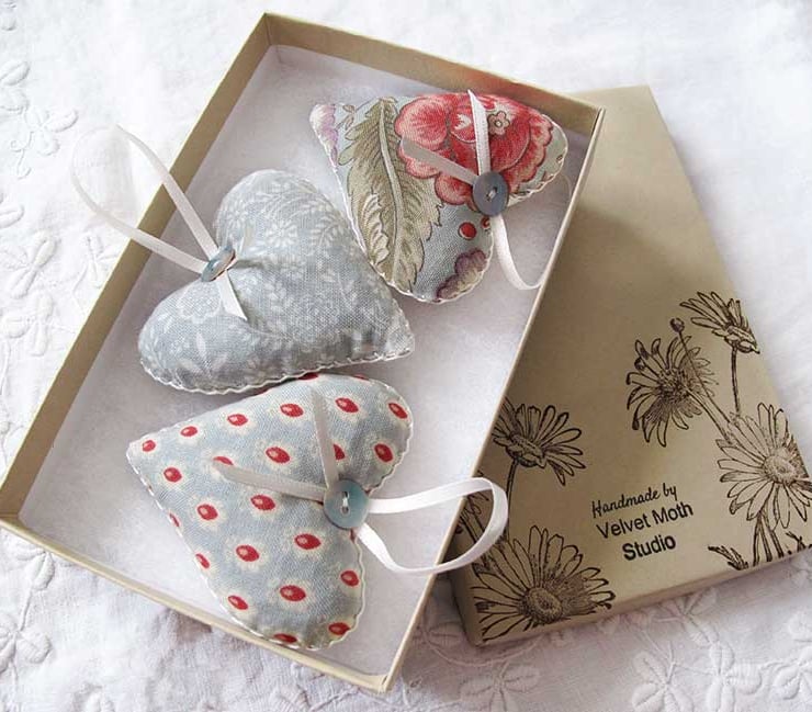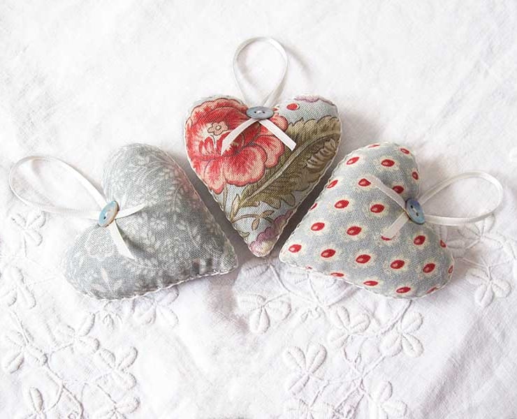 I have a long standing love of lavender and harvest it each year from my garden. Together with my ever growing collection of beautiful fabrics these little hearts help me use up my left over pieces while adding some wonderful fragrance to the home.