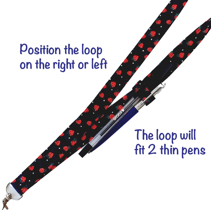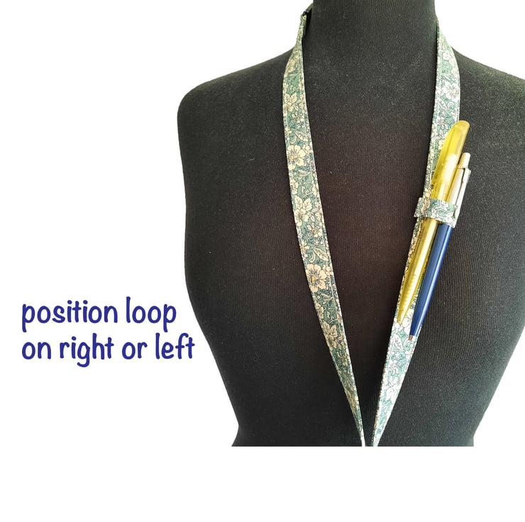 Never lose your pen or glasses again! Keep them handy with this loop that can be added to any of my lanyards. The loop will be made in the same fabric as your lanyard.