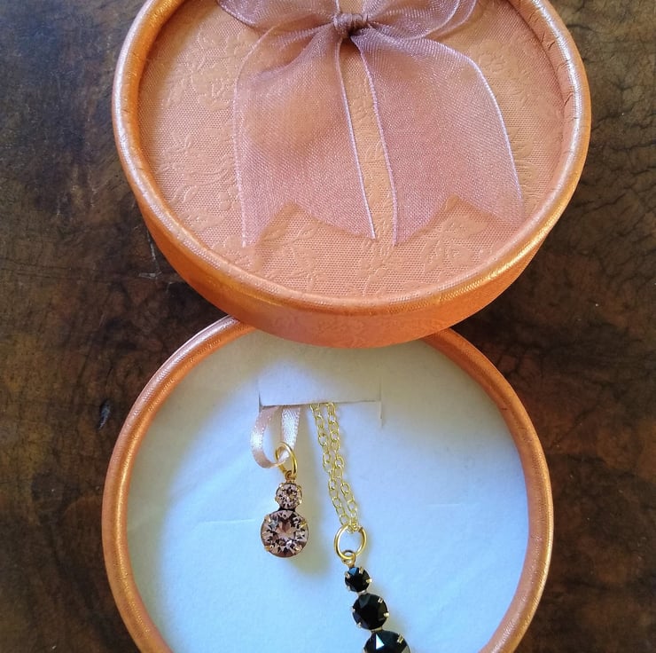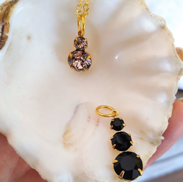 Set one - Black Swarovski three crystal pendant and a vintage rose pink Swarovski two crystal pendant