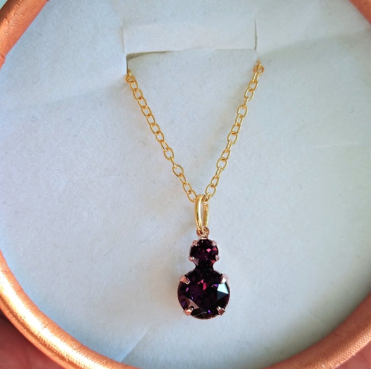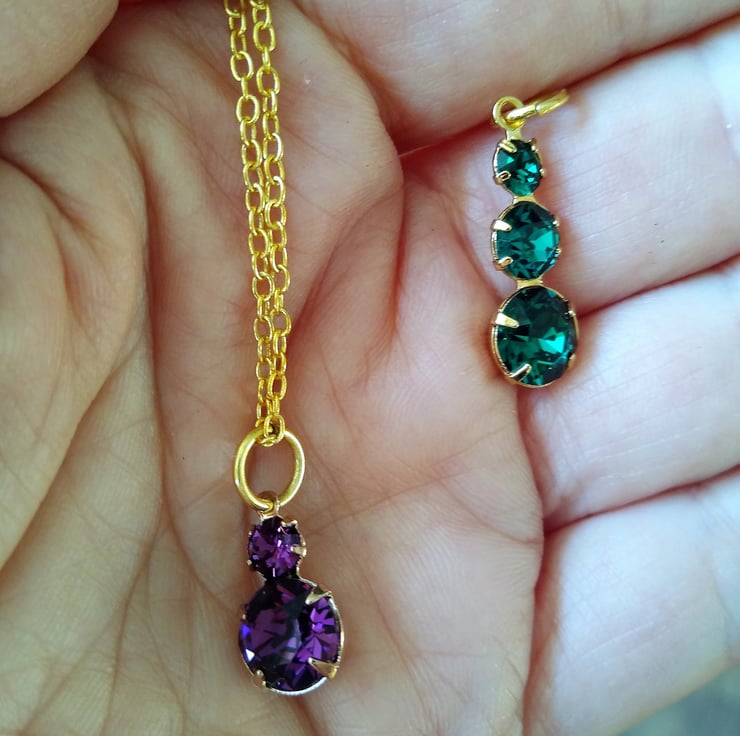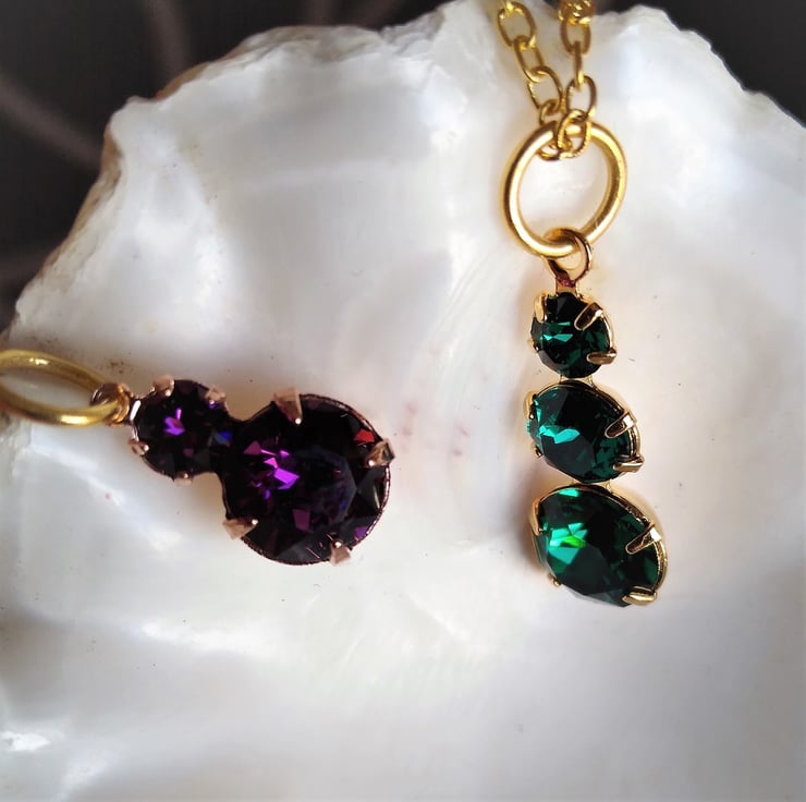 Set two - Emerald green Swarovski three crystal pendant and a purple Swarovski two crystal pendant