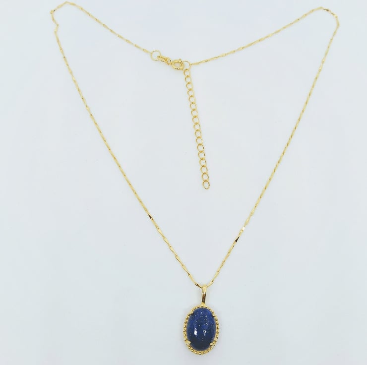 Natural Dark Blue Semi Precious Lapis Lazuli 14x10mm Gold Pendant & Chain