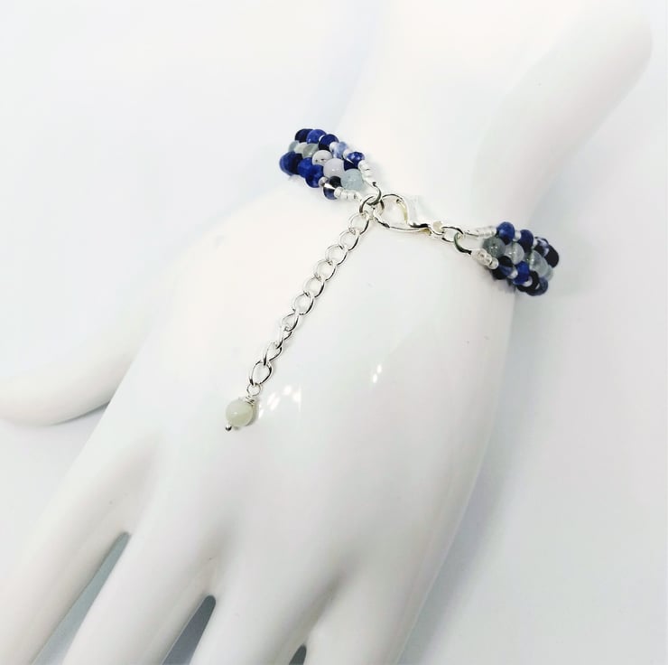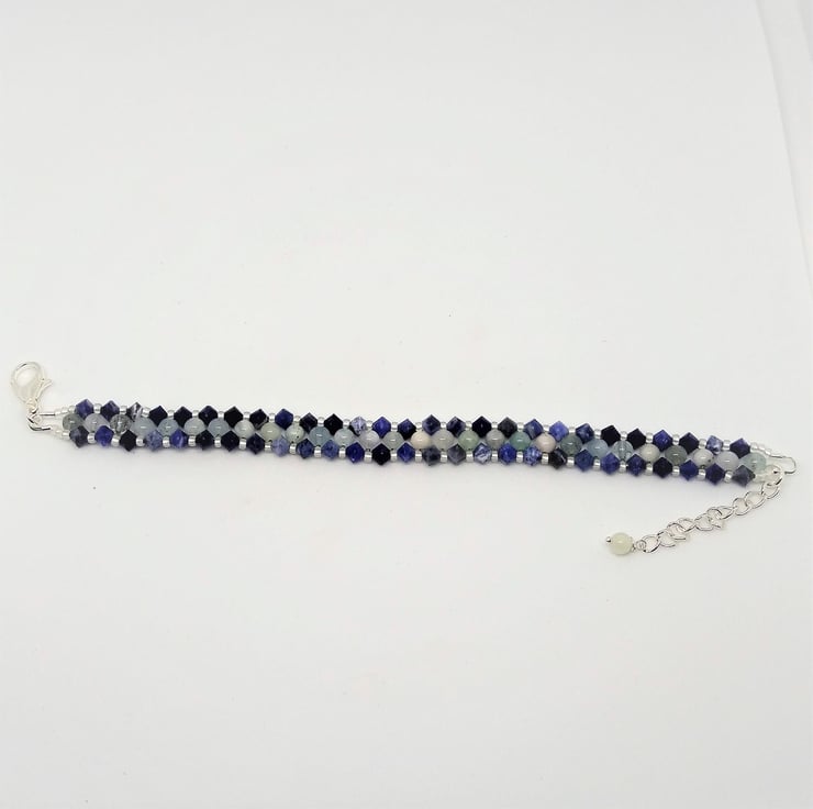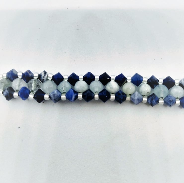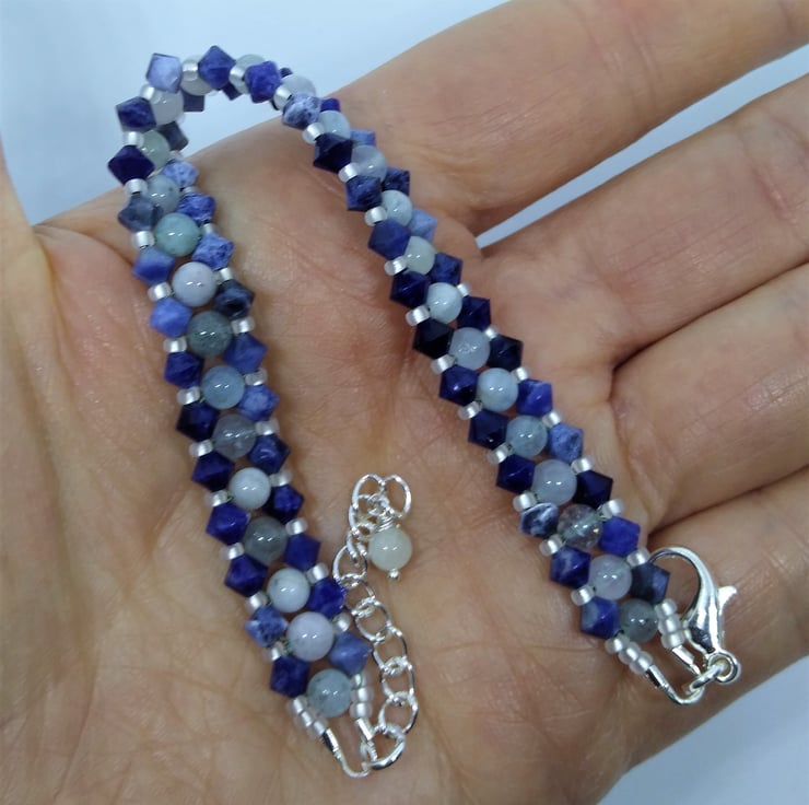 Genuine Aquamarine and Sodalite Bracelet, Blue Gemstone Handmade Bracelet 6-8 in