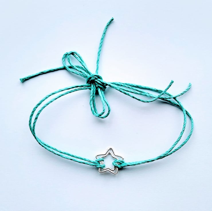 4 Pale Blue Hemp cord, 15 & 10 mm silver plated metal stars