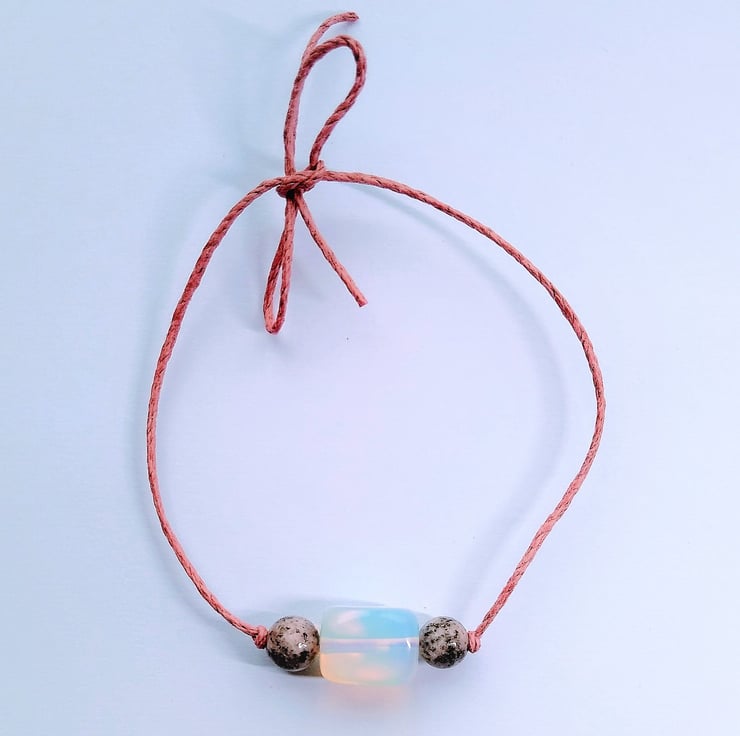 1 Vintage Pink Hemp cord, 12x10mm Opalite & 6mm pink Jasper