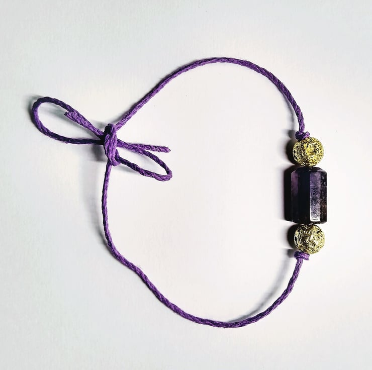 6 Light Purple Hemp cord, 14mm Amethyst faceted tube & gold coloured Lava Rock