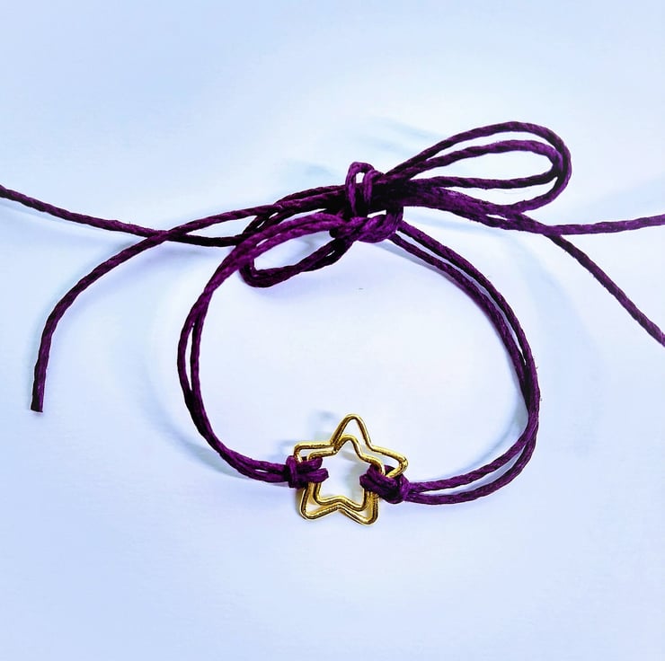 3 Dark Purple Hemp cord, 15 & 10 mm gold plated metal stars
