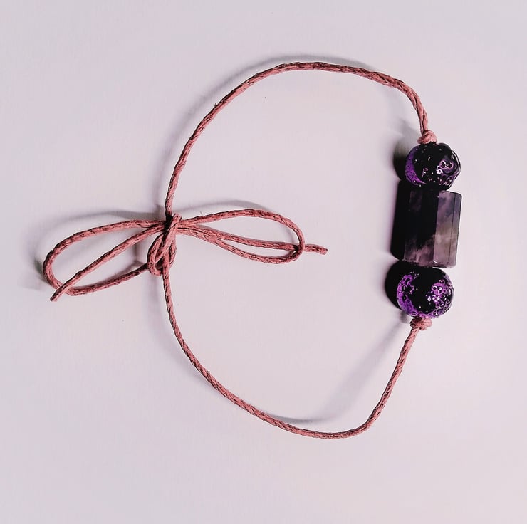 5 Vintage Pink Hemp cord, 14mm Amethyst faceted tube & 8mm metallic purple Lava Rock
