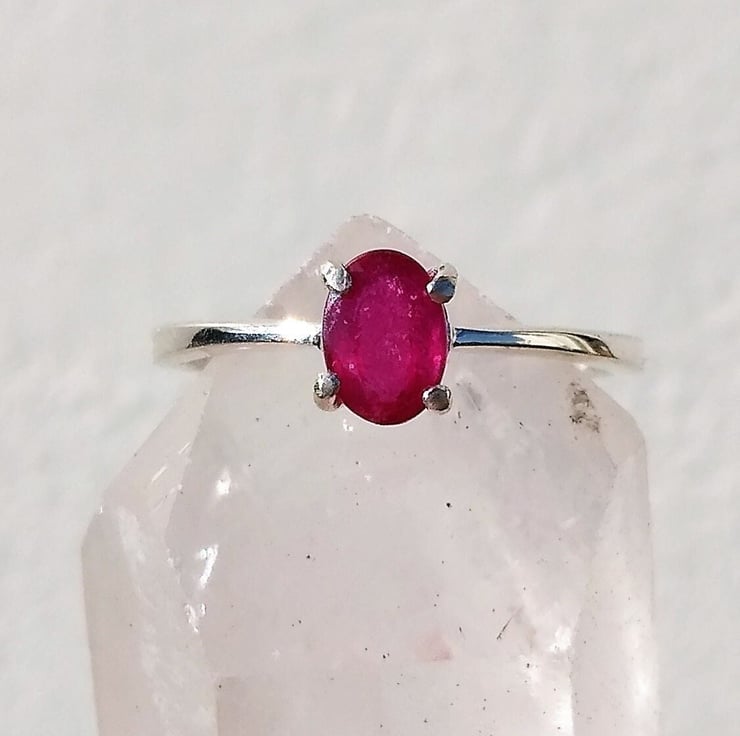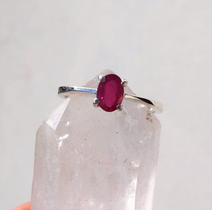 Oval Ruby Solitaire Sterling Silver Ring Size R, 925 Silver Ruby Ring Size 59