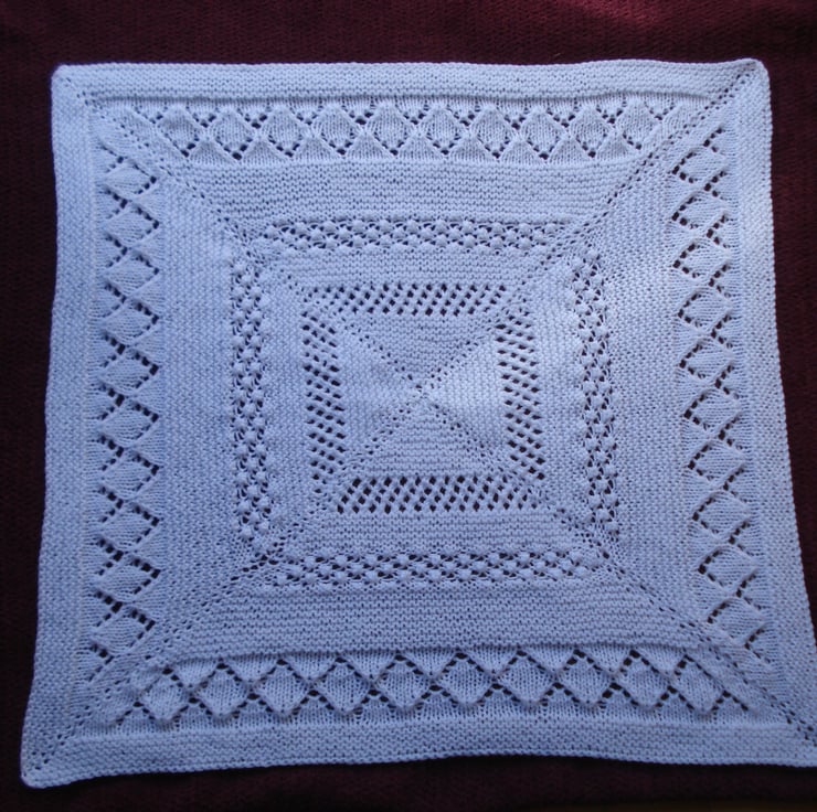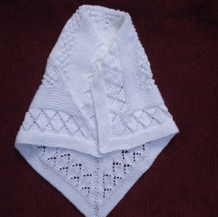 This is a pretty shawl based on the Little Dreamer Shawl in the shop, I thought it would be a nice gift from the new baby to his or her brother or sister. I think it would wrap a 14" to 16" doll.