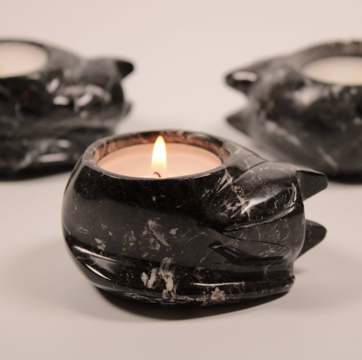 Carved from Onyx Marble, in the foothills of the Himalayas, each Cat Tea Light Holder is Unique