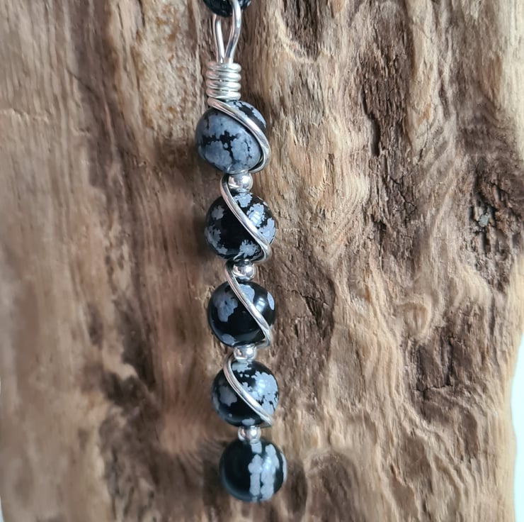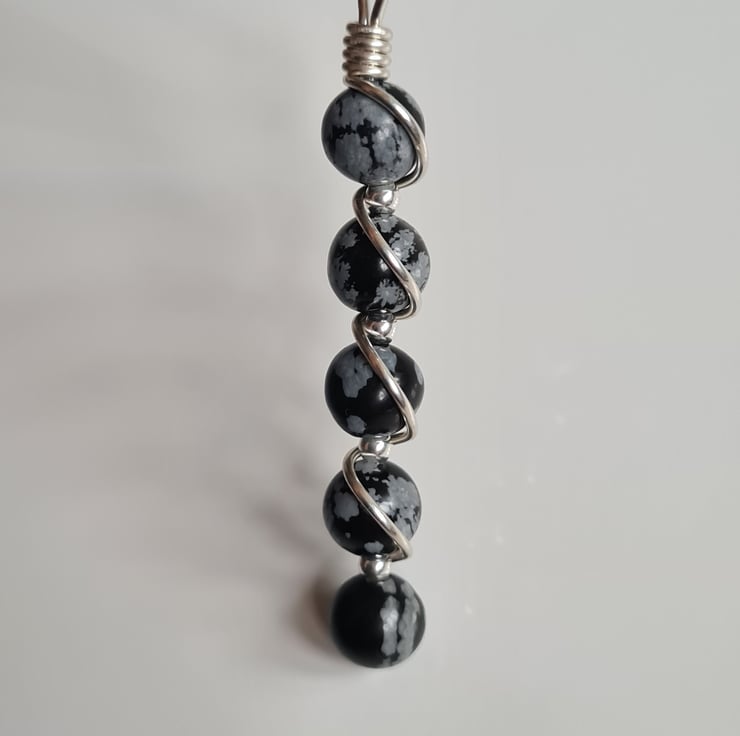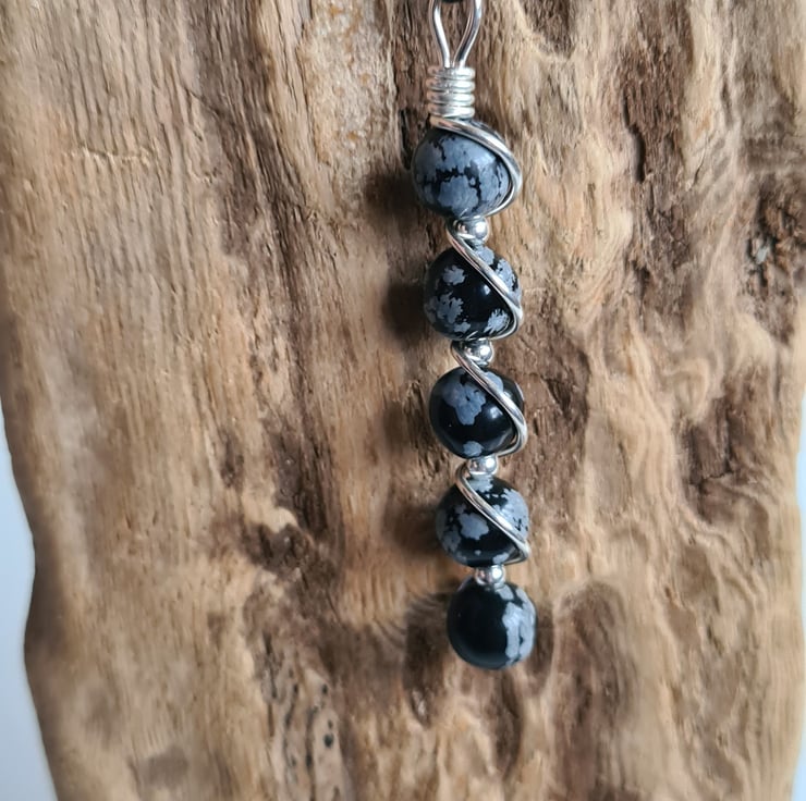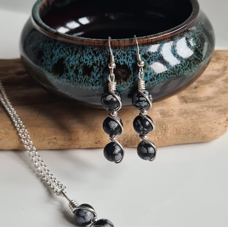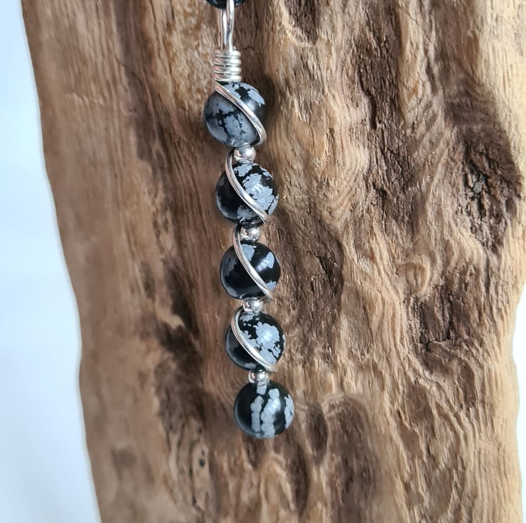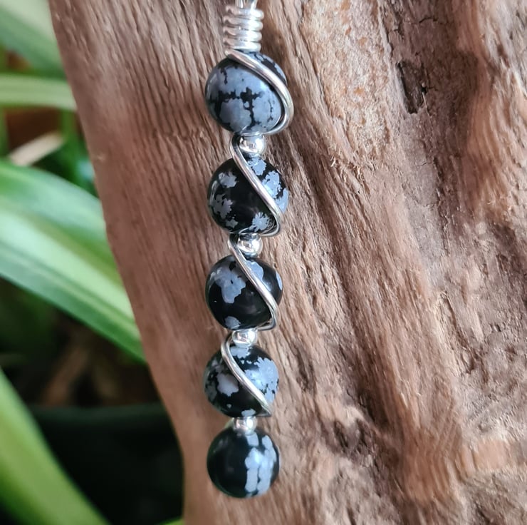 I have wrapped these lovely Natural Snowflake Obsidian & 925 Silver beads in 925 Silver and the pendant comes on an 18" 925 Silver chain and gift boxed.