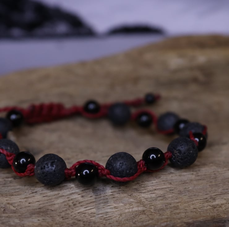 Men's adjustable bracelet with Rav Lava stone and Tourmaline in burgundy