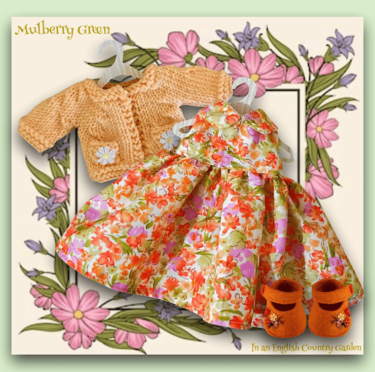 A pretty little apricot cardigan with two tiny pockets, decorated with daisies, to fit the Mulberry Green characters. The cardigan matches the other apricot items in my shop.