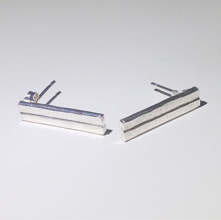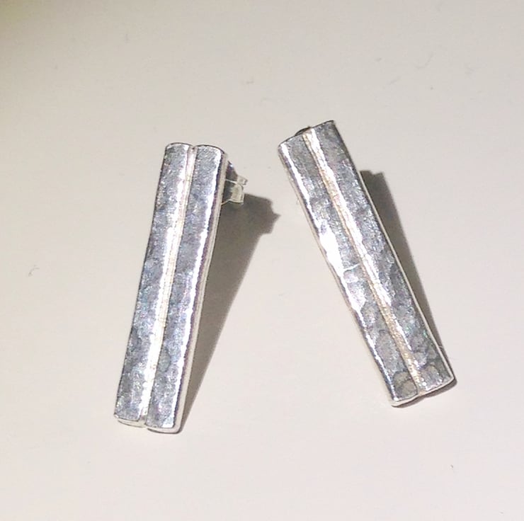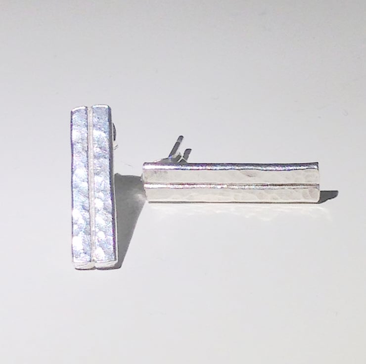 These beautiful sterling silver earrings are hand forged and have an attractive hammered finish.