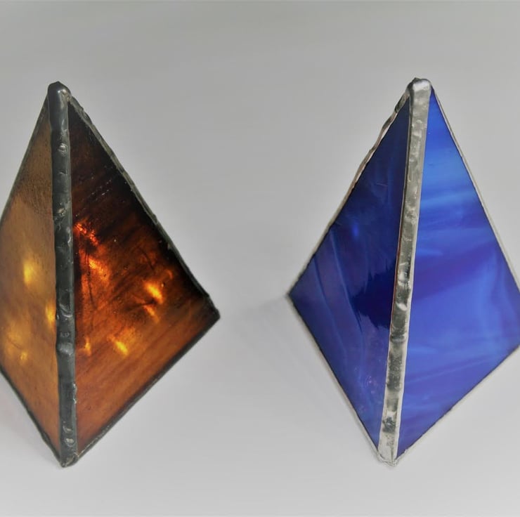 Place a battery tea light or a mini light string inside these pyramids to create a beautiful stained glass effect. Comes supplied with mini battery operated string lights.