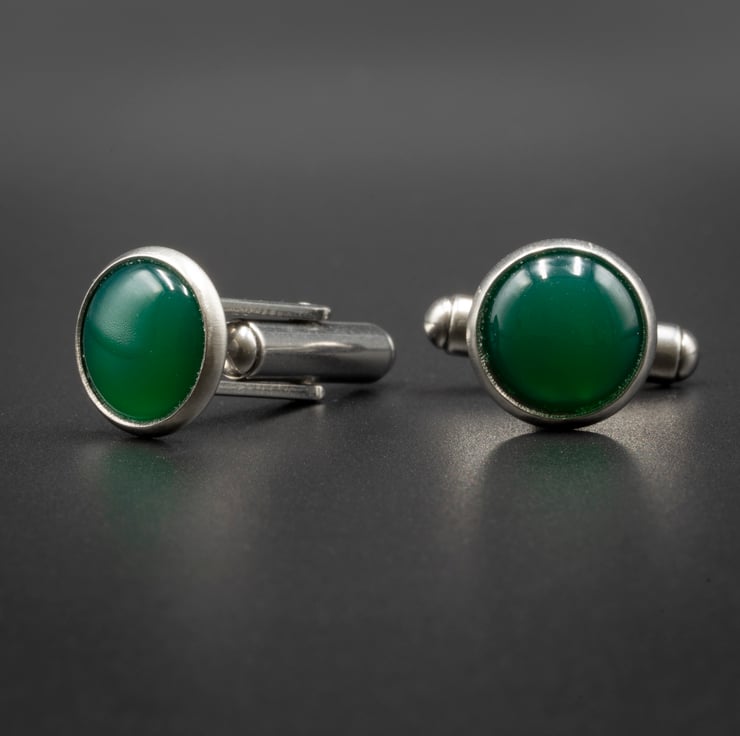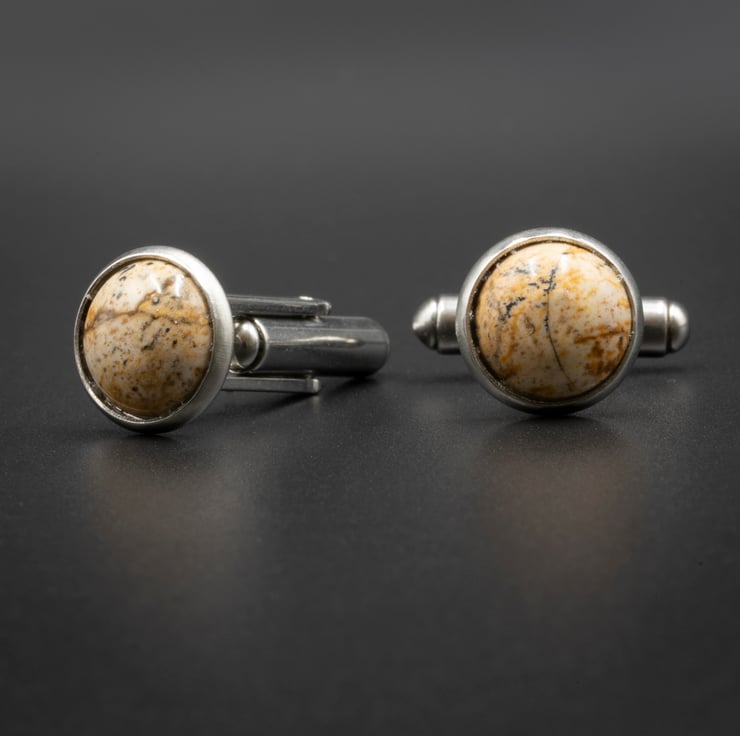 Natural Picture jasper 10mm stones are set into a pair of strong stainless steel cufflink mounts.