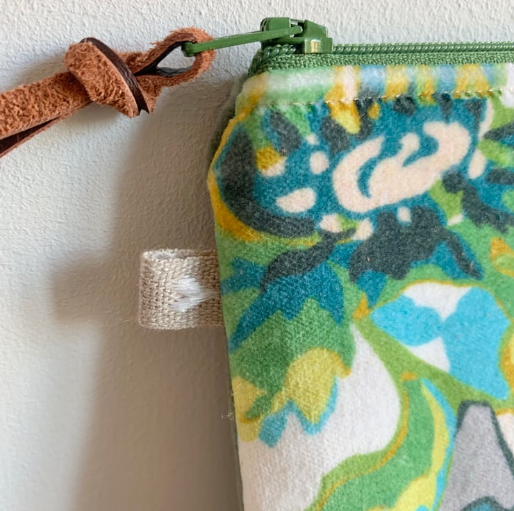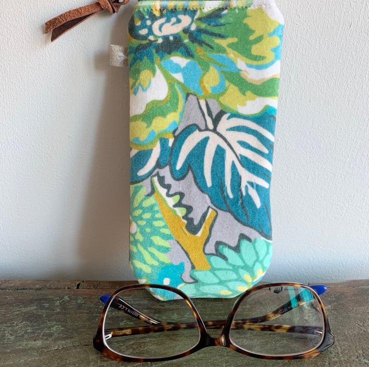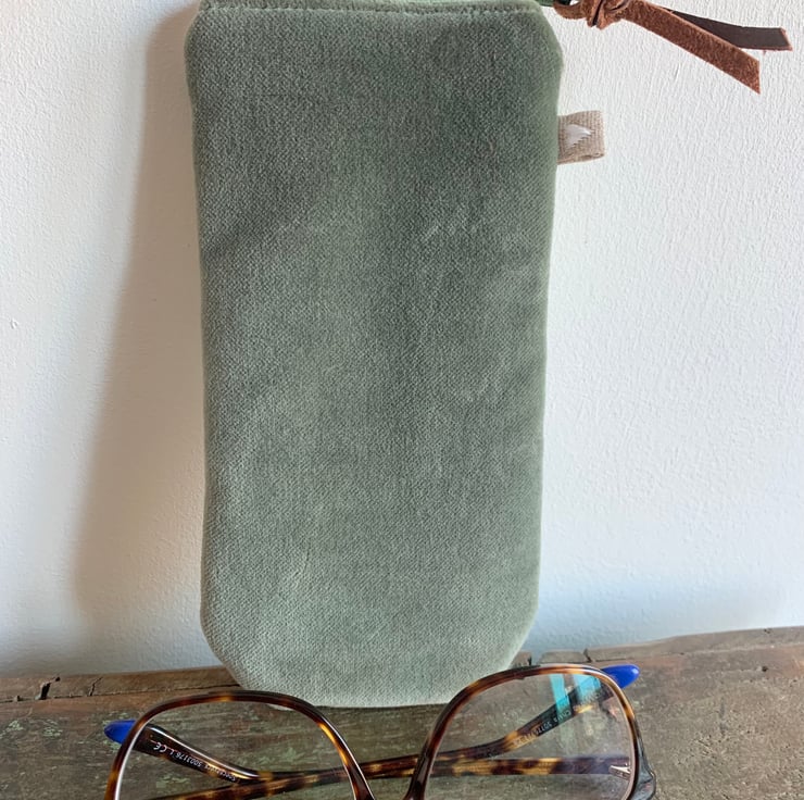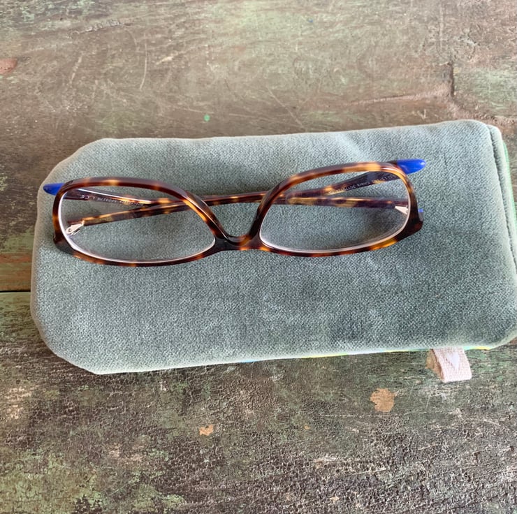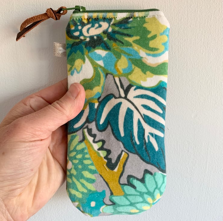 Pretty floral print velvet glasses case with zip fastening. The back is a soft green cotton velvet. There is a layer of interfacing to give some protection to the contents and the case is lined with Laura Ashley cotton with a delicate floral design.