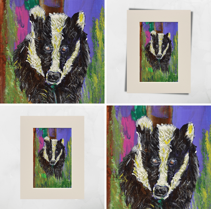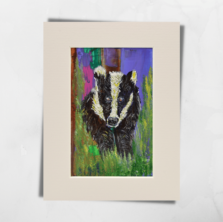 This painting is called, "Out on the Woodland Track". It's inspired by my love of nature and wildlife. It always gives a thrill when you are lucky enough to spot a badger in the woodlands. This would make an ideal gift for any occasion.