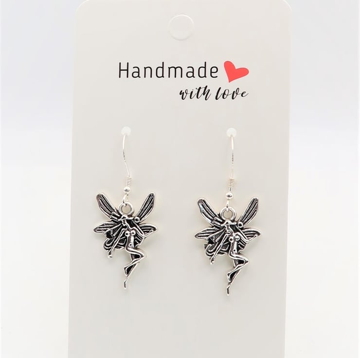 I love these Fairy Charms. They are Tibetan Silver Alloy and I have put attached them to Sterling Silver Ear Wires.