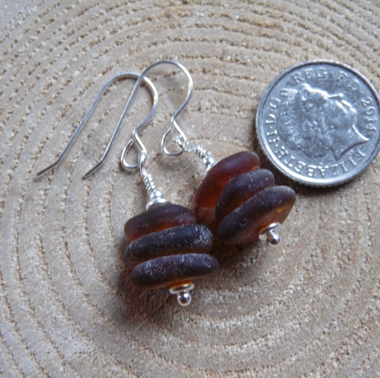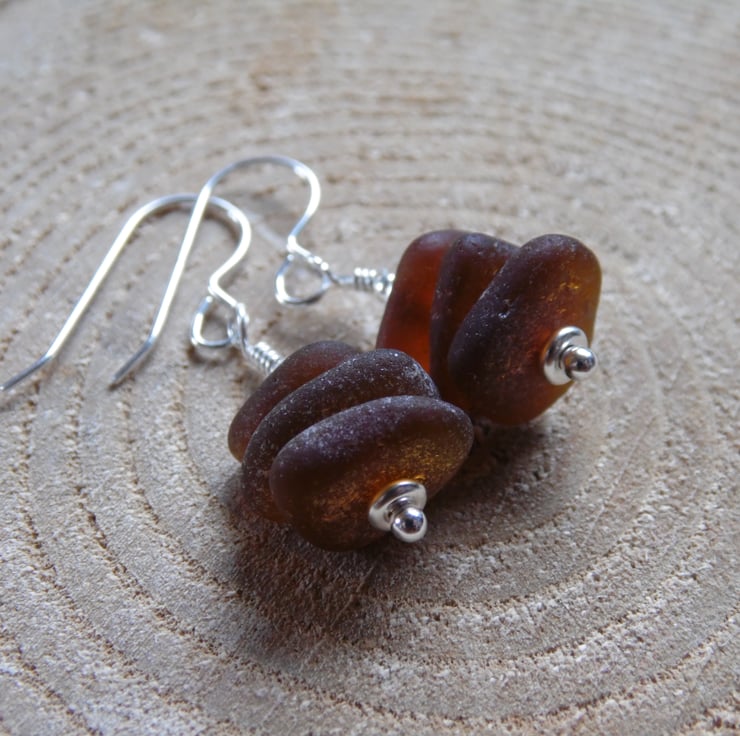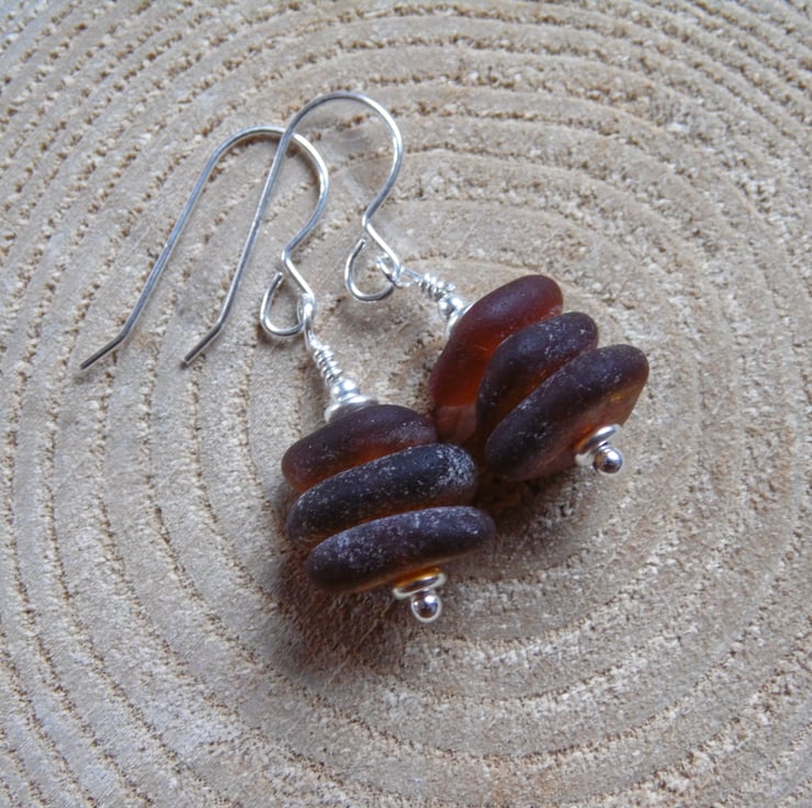 Amber Cornish Sea Glass Stack Earrings, Sterling Silver E564