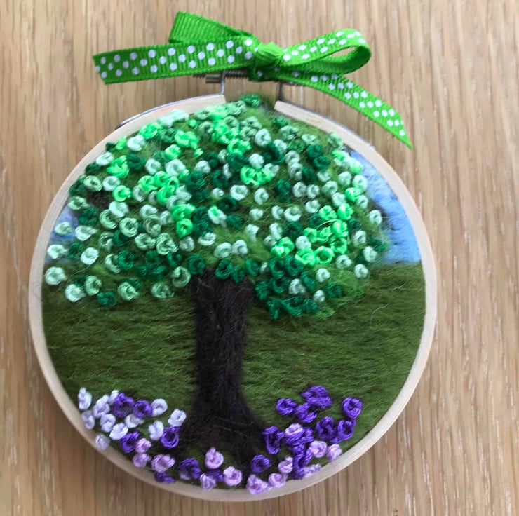 Hand embroidery-needle felted-hoop art - tree