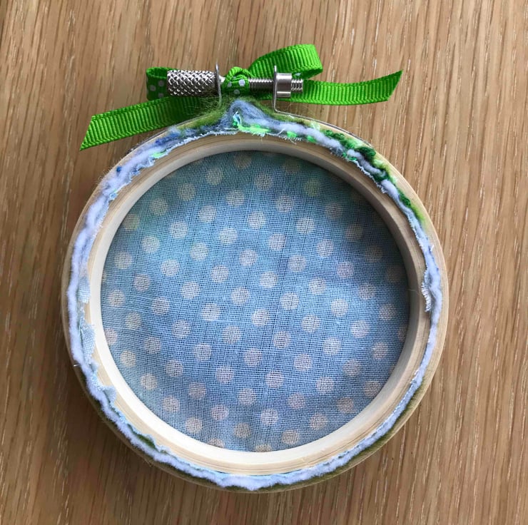 A mini embroidery hoop 4.5 inches diameter.