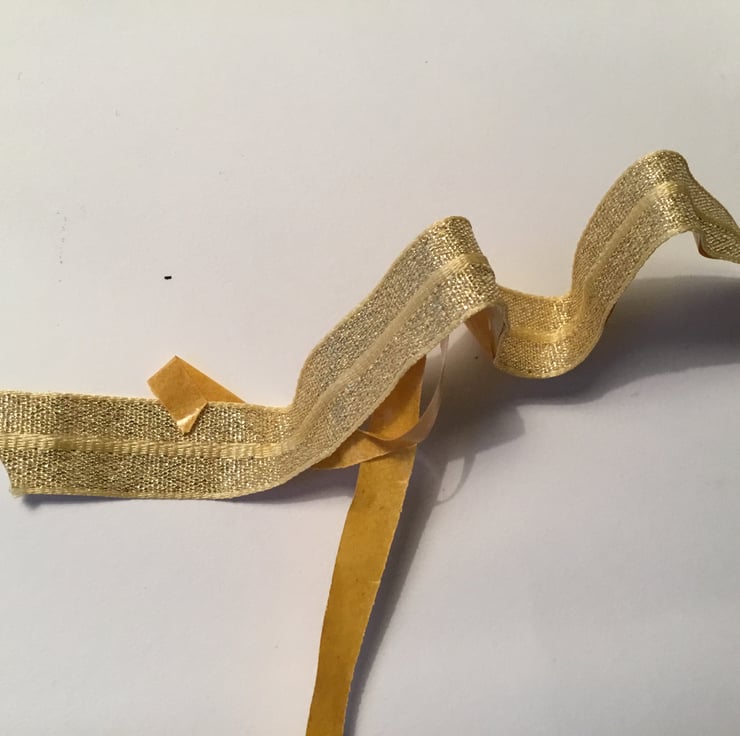 This listing is for a roll of gold trim. The ribbon is 1.3cm wide. It has two wired edges and a peel off, self adhesive backing. I’m not quite sure what the intended use of this is, as I was given it. I might try using some to decorate greetings cards.