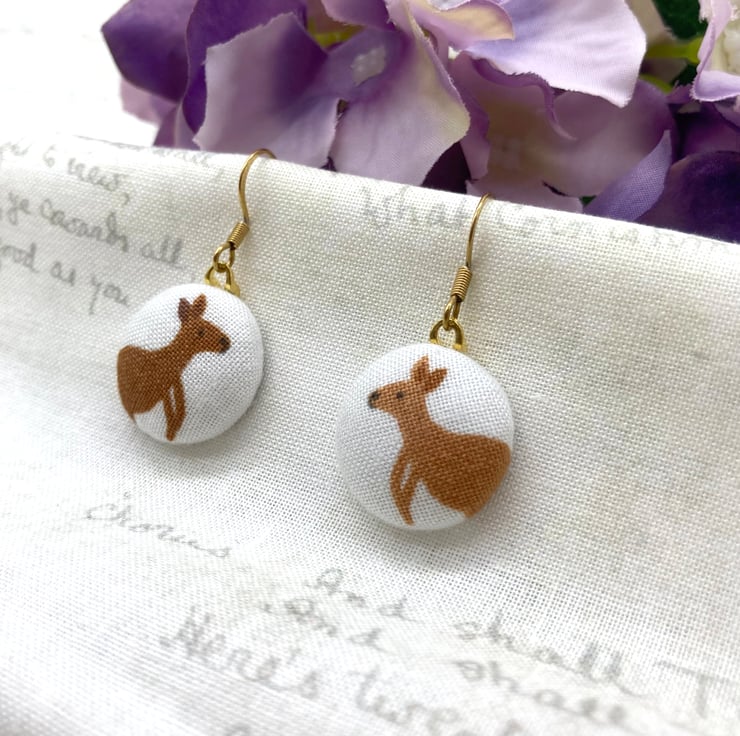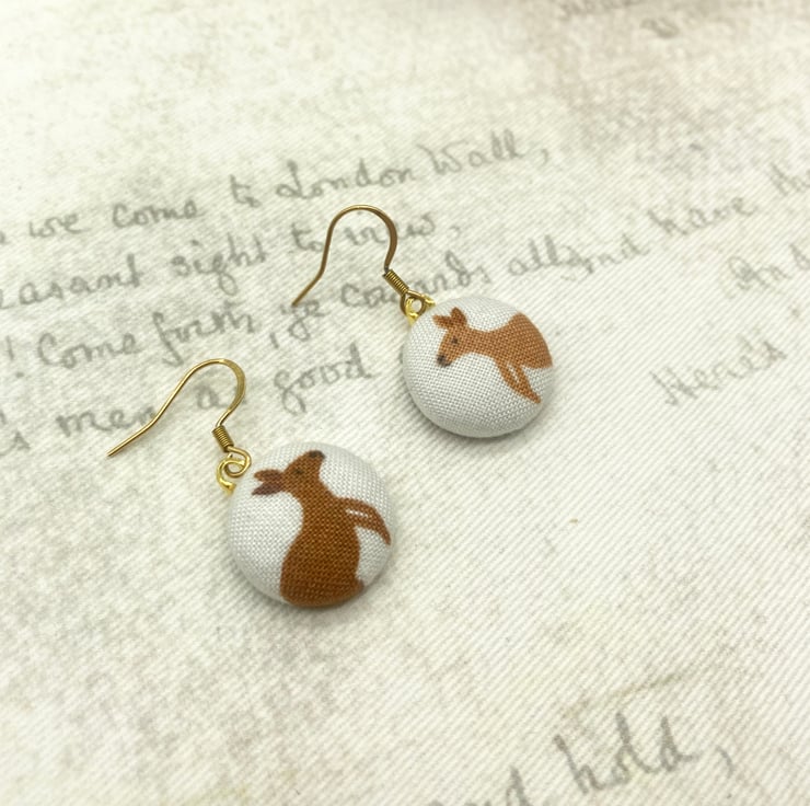 Bounding along to sit on your ears are these whimsical Kangaroo fabric button dangle earrings!