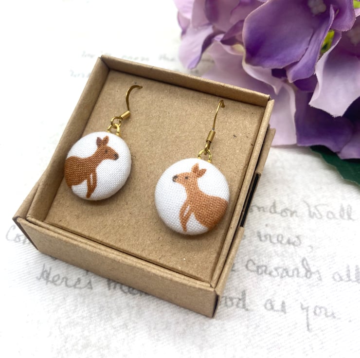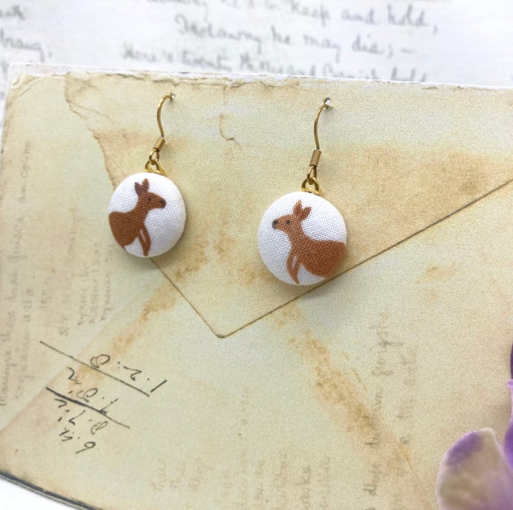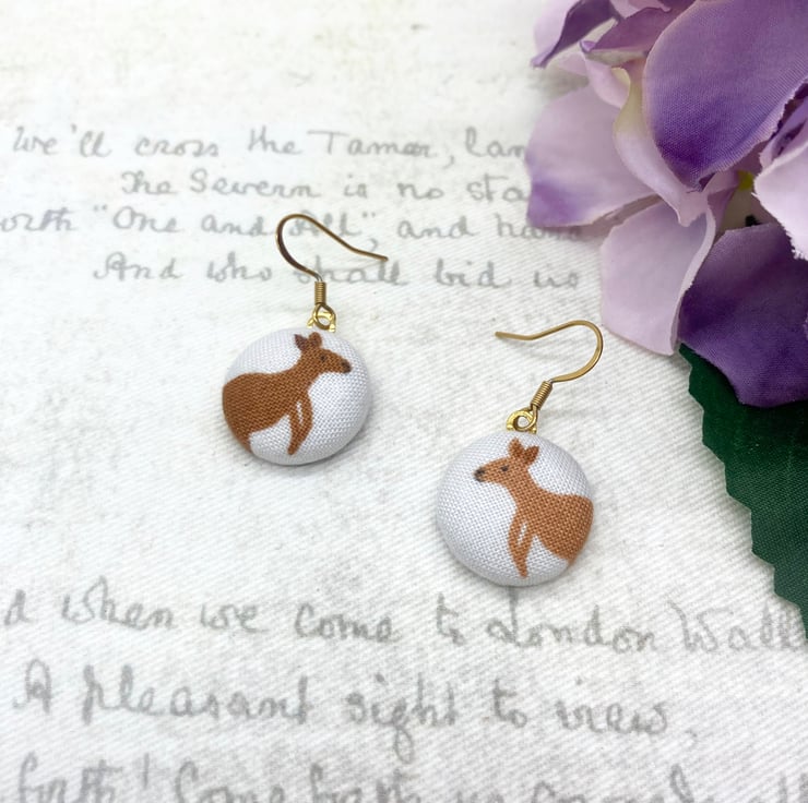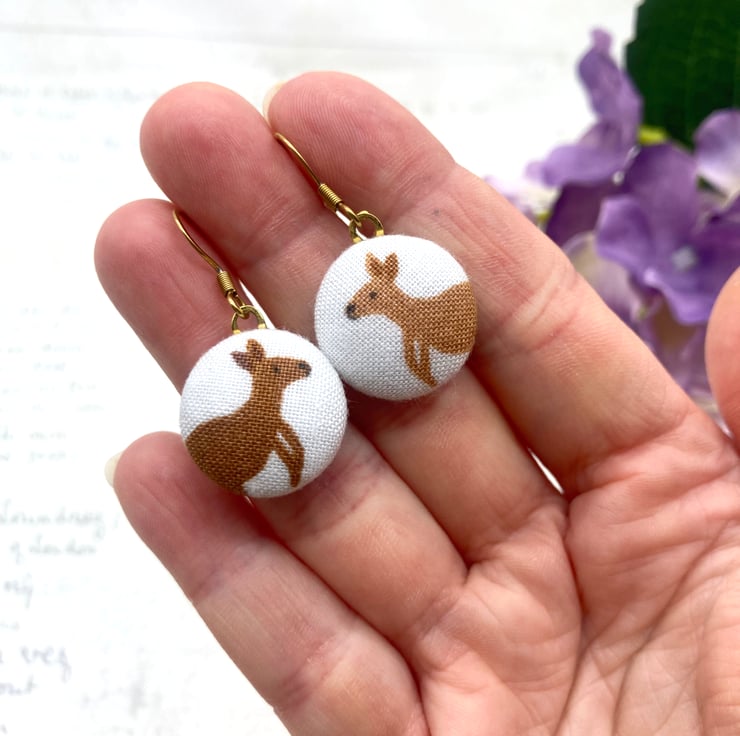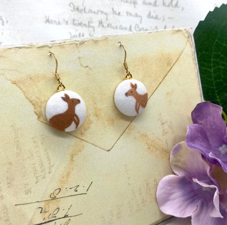 Kangaroos fabric button dangle earrings Aussie animal lover