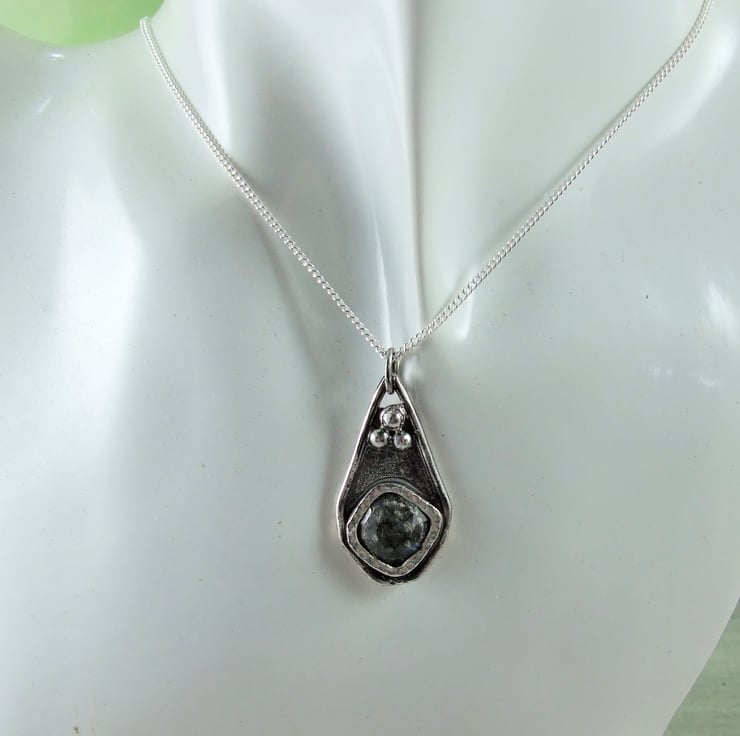 Recycled Silver Labradorite Pendant on sterling silver chain. The Labradorite gemstone is a slight second with flaws in the finish.
