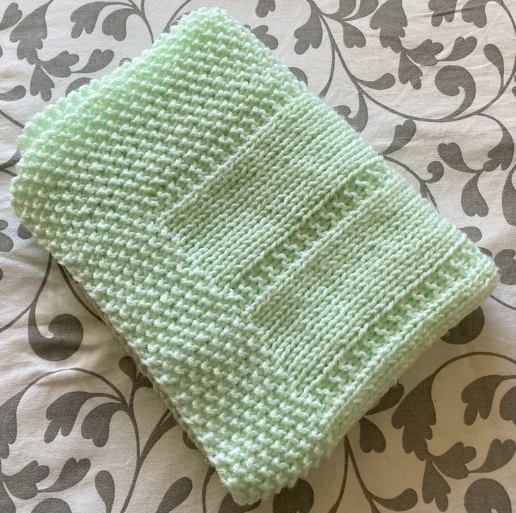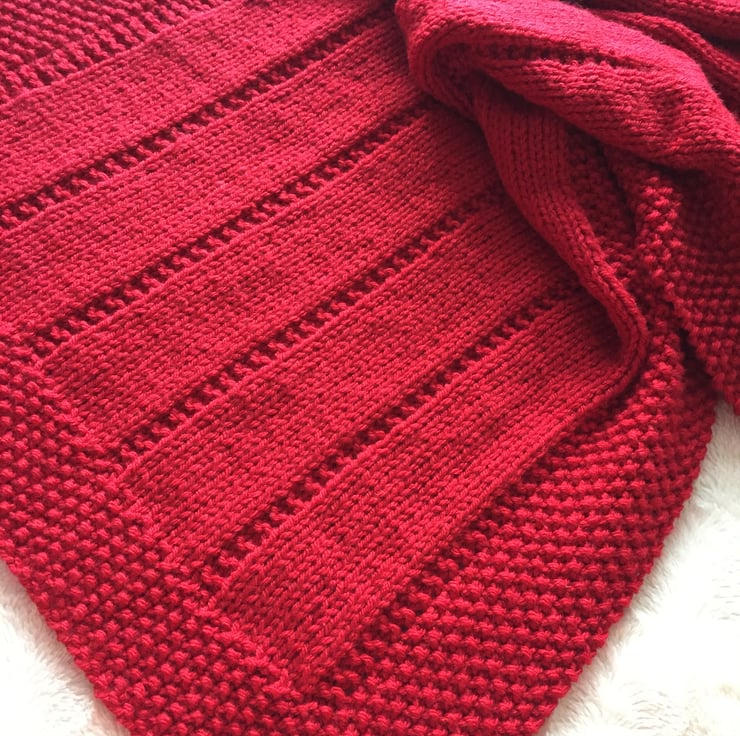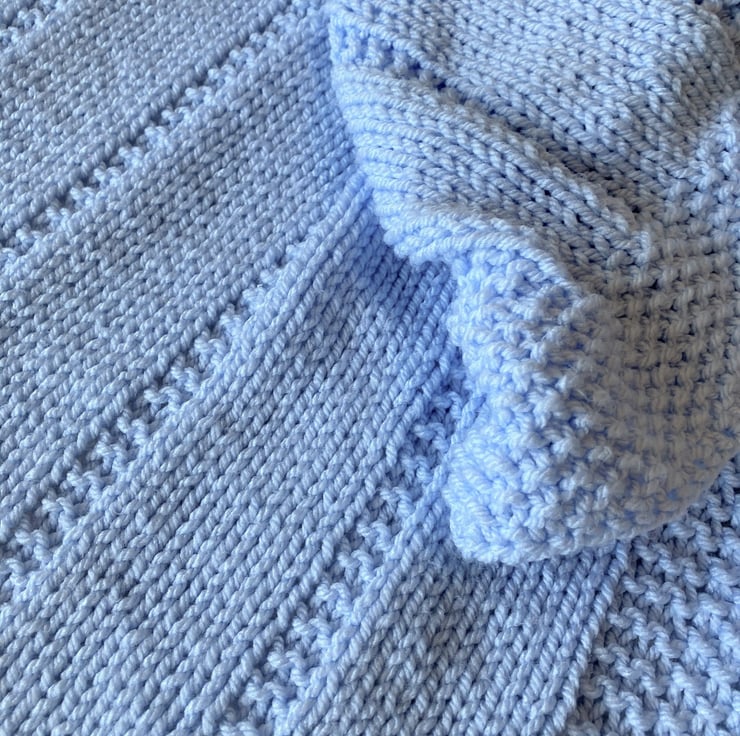 A very easy pattern with a timeless design, using only knit and purl stitches to create a simple baby blanket.