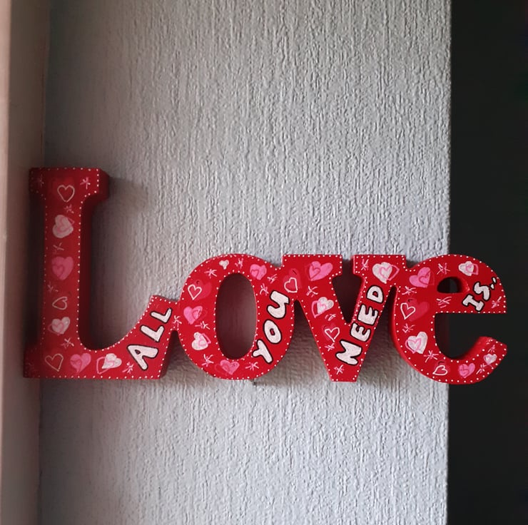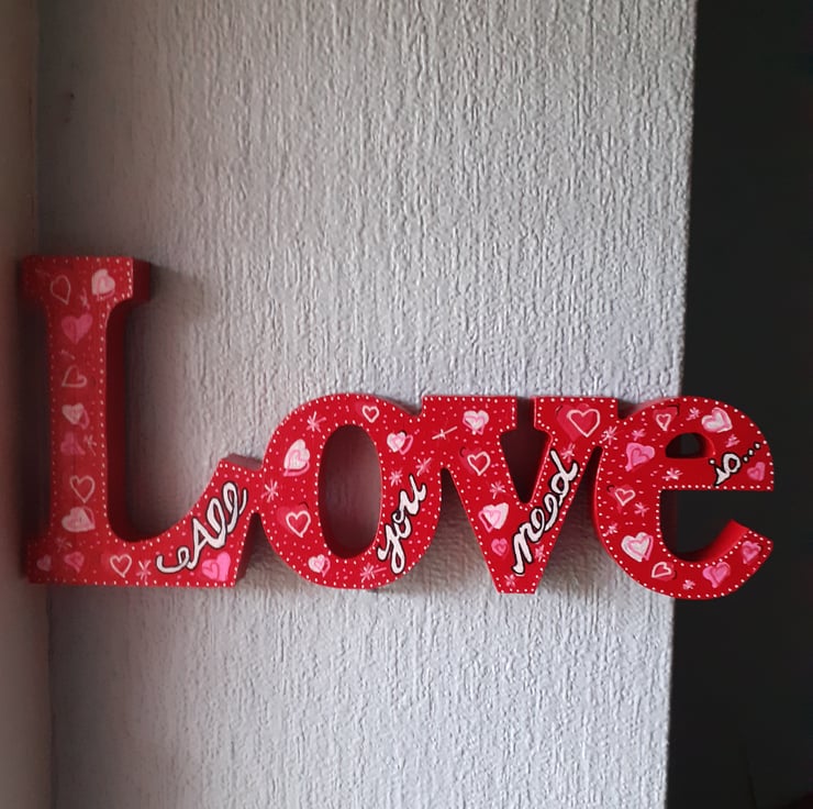 This love word would be suitable for Valentines Day, or an anniversary (Wood is for the 5th Wedding anniversary), for a babies nursery, for a wedding table or for any day really. Buy it for someone or just for yourself.
