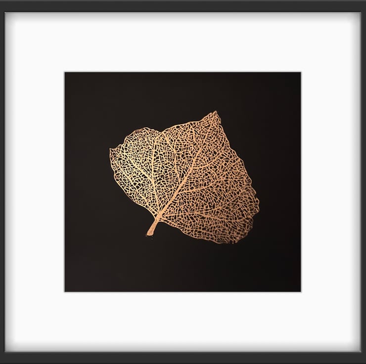 It is printed on paper measuring 30 x 30cm using copper, oil based ink onto smooth black paper. It is unframed and mounted in off-white to 40 x 40cm