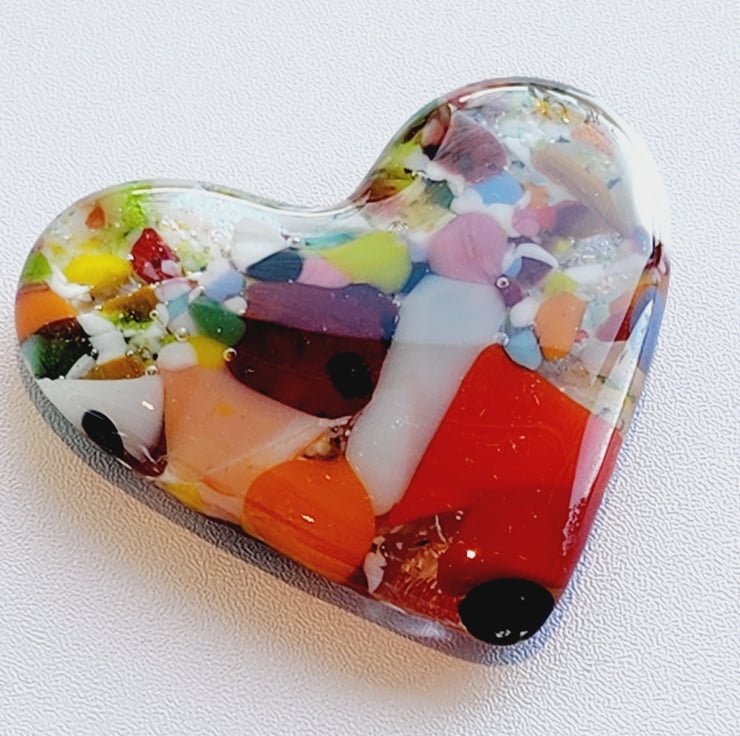 This delightful fused glass heart is a perfect gift to give to a loved one to let them know how much you care. It is very tactile and lovely to hold in the palm of your hand. It measures 5cm in height and 6cm width.