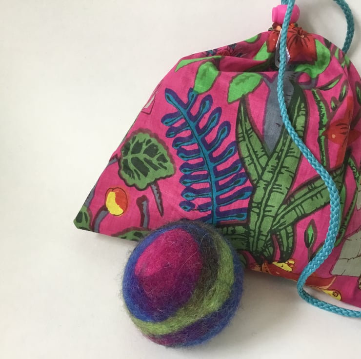 Balls may vary a little in size but are generally about tennis-ball-sized and weigh about 50g. They are great for speeding up the drying process by separating items of laundry, allowing a better flow of warm air. They also smooth out creases, soften towels and can reduce static. Being made from pure wool means that the dryer balls reduce your use of plastics or non-recyclable dryer sheets and as the wool absorbs water from your laundry, drying is more effective. Wool balls can be used over and over again and will not release any toxic chemicals into your dryer. When they reach the end of their useful life you can pop them in your compost bin. This won’t be for a long time. I’ve had mine for well over 2 years and they’re as good as new!