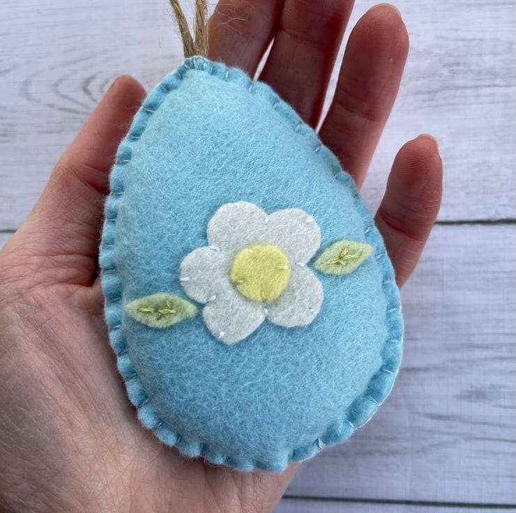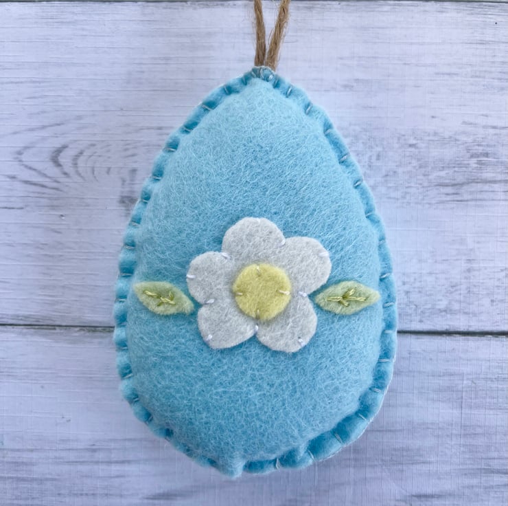 Hand sewn this Easter Egg hanging decoration makes a lovely addition to your Spring home decor. Made from felt and lightly padded. The design is stitched on the front with the back plain. A rustic twine means your decoration is ready to hang.