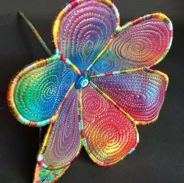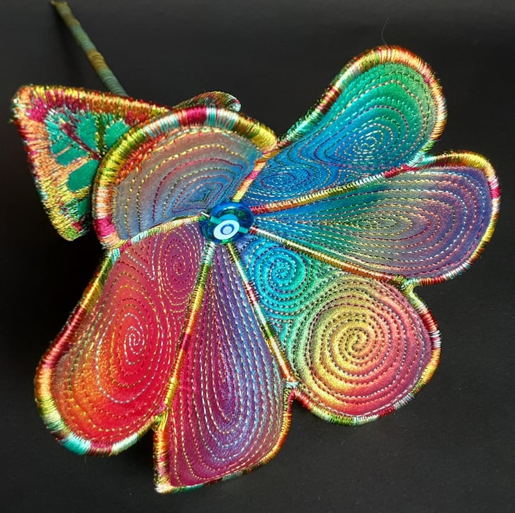 This is a handmade machine stitched textile flower